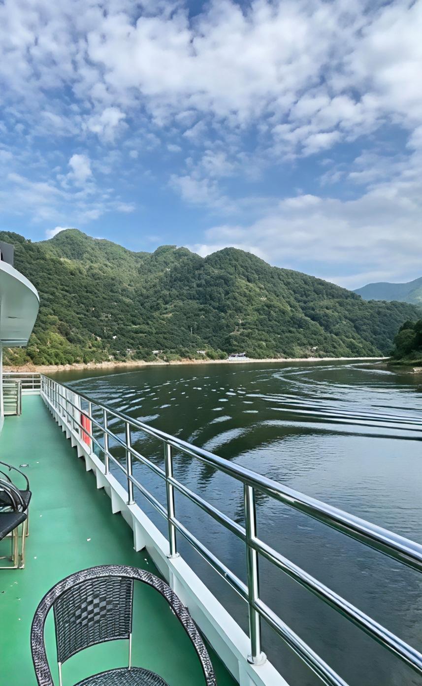 远处的轮船高大耀眼,小编走完路边的道路,自然也是登上了游船,缓缓前行,新安江的美景如同一幅徐徐展开的美丽长卷一样,在眼前不断变换那般。这里江水清澈见底哦,能看到下面游鱼在水中自由自在得游荡,周围两岸的山峦连绵起伏,有的山峰陡峭险峻,有的山峰则圆润柔和,形态各异。