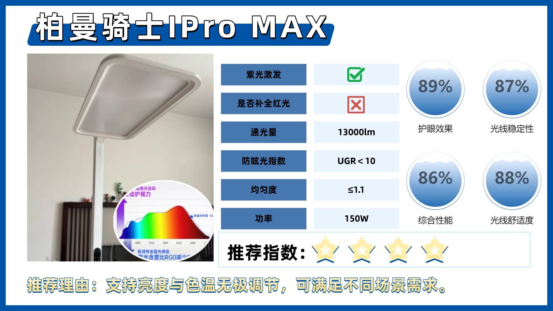 大路灯什么品牌好用又实惠?柏曼骑士IPro MAX属于品牌高端系列中的旗舰款,整体配置与工艺水准都相当出色。它采用一体式发光面设计,并搭载紫光激发全光谱技术,能够实现高显色、低蓝光且光线均匀柔和的照明效果,长时间用眼也较为舒适,功能上,支持智能恒定照度与入座感应,可自动调节光线强度,维持稳定的照明环境,使用体验更智能化。从硬件来看,这款灯使用自研芯片驱动,虽然稳定性不错,但与普瑞芯片相比,在能效与光色还原度上仍有一定差距,整体而言,更适合追求品质与高端体验的伙伴。