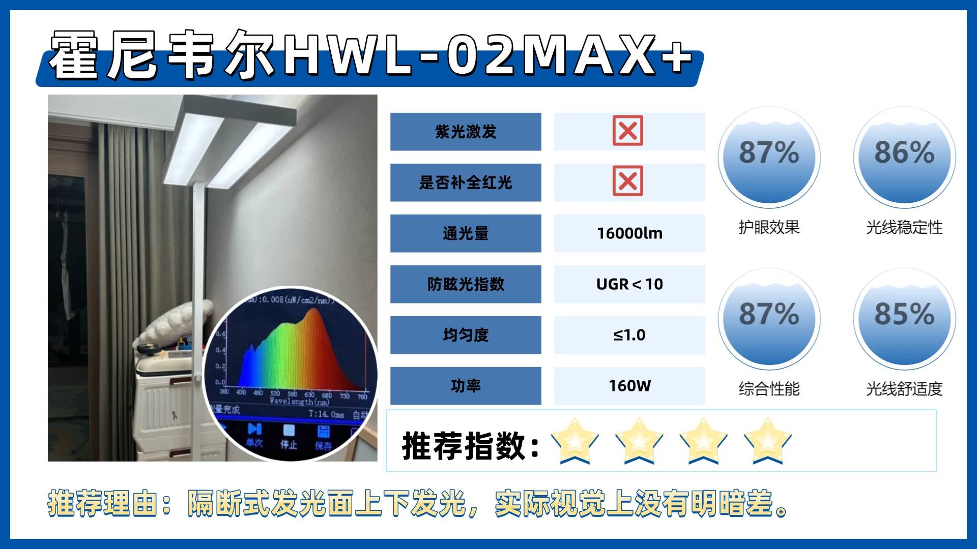 大路灯什么品牌好用又实惠?霍尼韦尔这款护眼大路灯外观辨识度高,采用独特的隔断式发光面与上下双向发光结构,照明覆盖范围更广,整体光线分布均匀。它还搭载了顶光漫射技术,能为环境自动补光约80%,有效减轻空间内的明暗落差,视觉舒适度表现不错,光源方面虽为全光谱设计,蓝光比例控制较低,但光谱中仍缺乏红光波段,并且采用直发光的方式,整体光感略强。