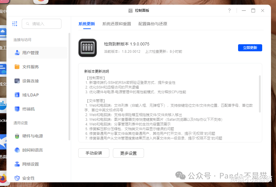 这次X86架构的部分机型迎来了NVIDIA工具包和驱动的升级,主要还是增加对外界显卡的稳定性;SAN Manager也更新了运行性能,将NAS存储设置为本地磁盘之后的传输性能有一定提升。