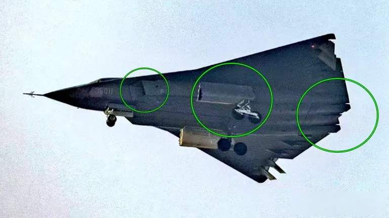 进气道从加莱特改回DSI,这说明中国不再照着西方的路子走,DSI更轻也更不容易被发现,特别适合没尾翼的飞机,尾部那两个尖尖的挡板,也不是传统那种能上下左右转的喷管,更像是靠气流来稳住飞机,省钱还扛造,弹舱也改了,从方方正正的盒子变成凹进去的曲面,明显是想多塞几枚导弹,说不定还带智能装弹和压热信号的本事,空战现在不是一个人单干,得靠一群飞机一起压上去。