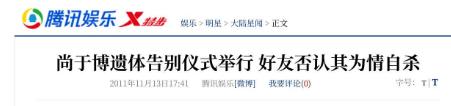 腾讯娱乐《尚于博遗体告别仪式举行 好友否认其为情自杀》