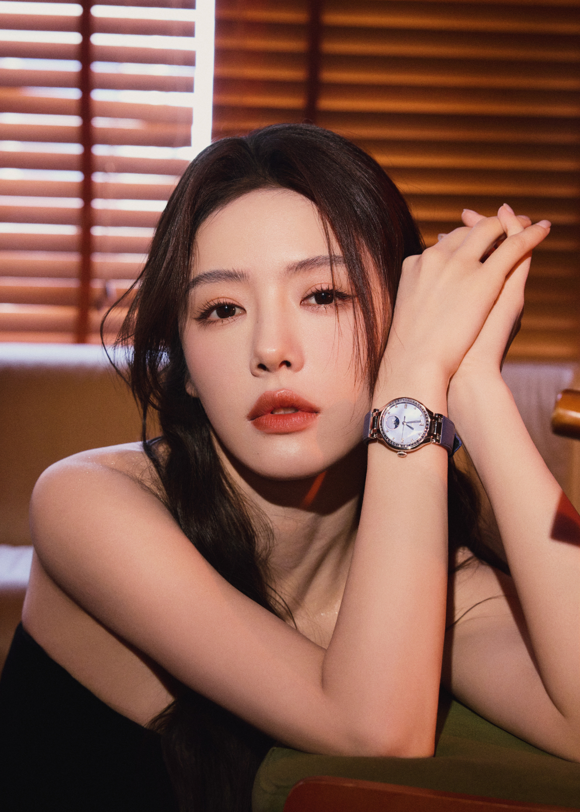 蔡文静半透针织将朦胧张力拉满,每一寸肌理都在月色里写满撩人的秘密,风动发丝时,