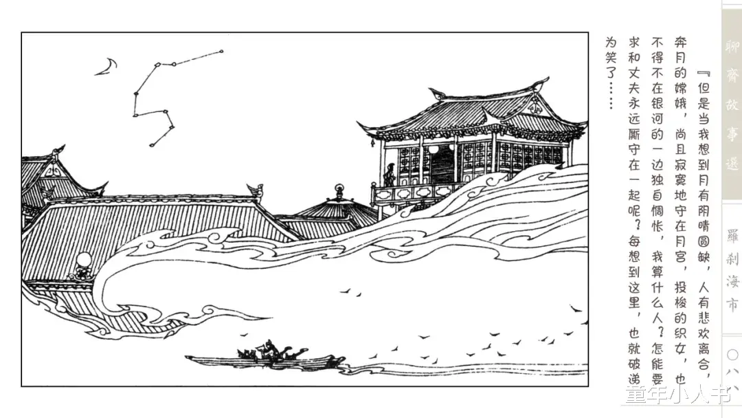 今天分享上海人美出版的《聊斋故事选》里的一个故事,名为《罗煞海市》,赵吉南编文,汪洋、蒋少杰绘画。