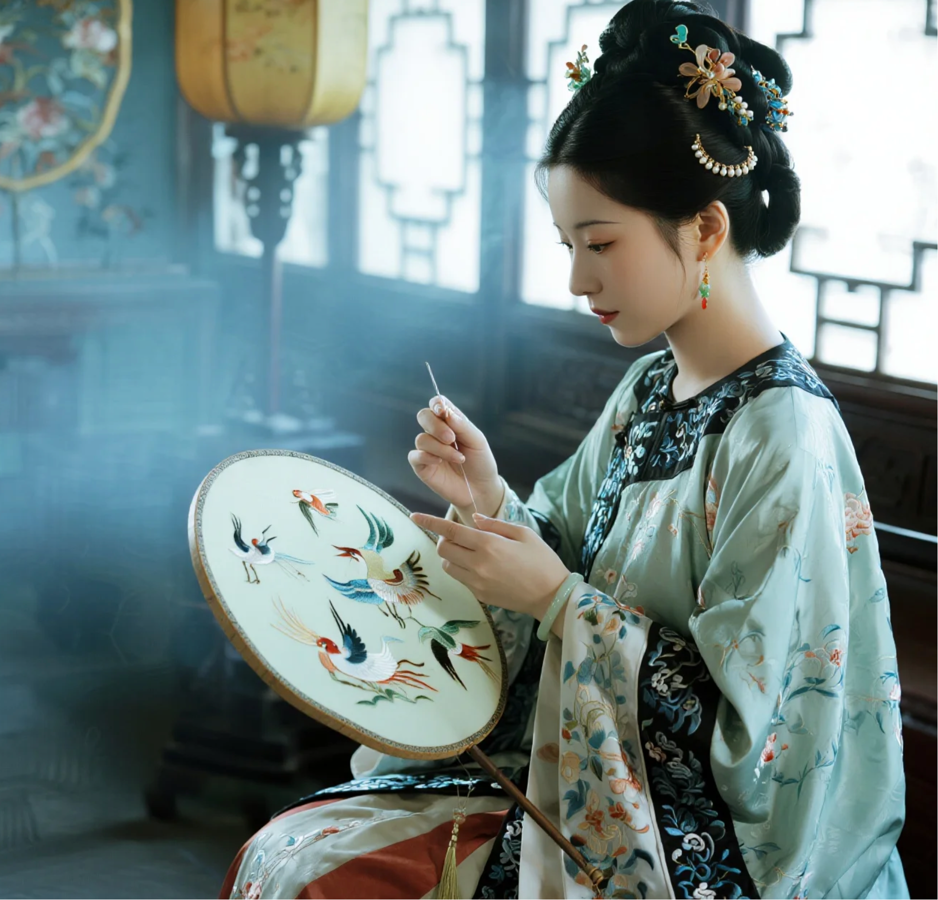 她为贵妃绣制的百鸟裙纱,令贵妃美得国色天香,独享圣上宠爱。
