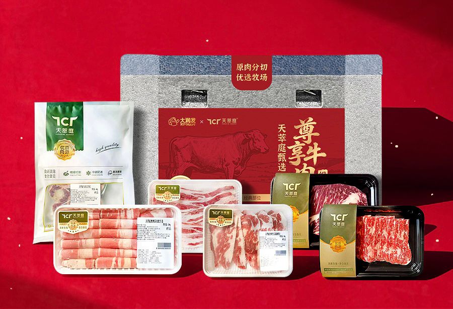 大润发展现出文化融合与深度定制的能力。其年货清单上,多款与知名品牌的定制产品引人注目——从澳洲安格斯牛肉的“家业丰隆”礼盒,到融合七种海味的“海纳百福”海鲜礼盒,大润发将“丰隆”“有余”“团圆”等新年关键词,转化为兼具文化寓意与实用价值的实体礼物,回应了消费者对“有讲究”年货的期待。