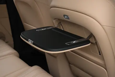 座椅采用12层云朵舒享结构设计,填充物软硬适中。前排座椅配备加热/通风/按摩/记忆功能,试驾时我特意体验了按摩功能,确实能缓解腰部疲劳。第二排座椅也贴心地配备了加热功能,让冬季出行更加温暖舒适。前排座椅后方的小桌板可承重30kg,还设有专属凹槽,放置水杯或平板电脑更加稳固。