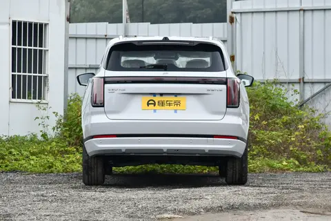 车尾与前脸相呼应,采用竖向尾灯组,并通过黑色饰板实现贯穿效果,让尾部更显宽大。后保险杠造型宽厚,配合隐藏式排气布局,整体风格简洁大气。有意思的是,车辆的电动后备厢关闭还支持脚踩关闭,通过地上投影出来的清晰图像LOGO,轻踩上去,车尾门便可关闭,试驾时我儿子玩得不亦乐乎。新车提供极夜黑、晨雾白等颜色,其中冰霜蓝和流光银在阳光下很有质感,停车场里一眼就能认出来。