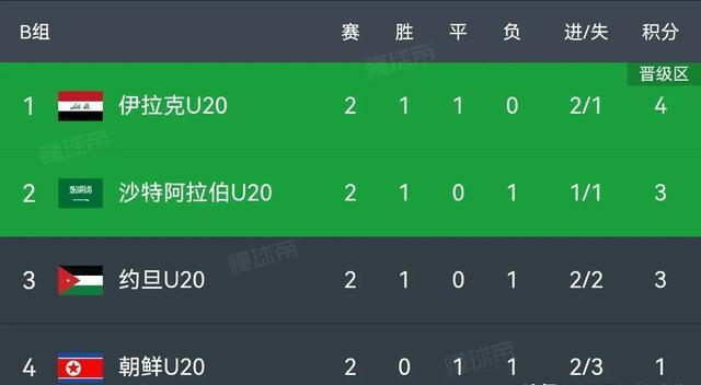 咱们来看一下目前B组的积分排名状况。沙特呢,在首轮比赛的时候,和乔丹队进行了一场较量,最终是以1:0的比分小胜了约旦队哦。就因为这场胜利,沙特拿到了3分,在小组当中目前是排在第一名的呢。再说说伊拉克和朝鲜这两队,他们在首场比赛的时候,双方你来我往,最终是打成了1:1的平局哦。这样一来呢,伊拉克和朝鲜两队目前各自都只拿到了1分。