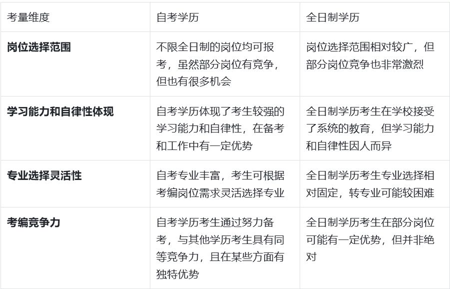 事实:自考学历在考编中具有自身独特的优势,通过合理选择岗位和努力备考,能够与全日制学历考生竞争。