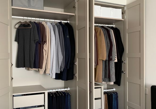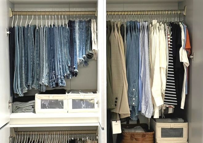 也要做好独立分区。各自有独立的挂放区,避免衣物混杂交错,不好找,容易乱。