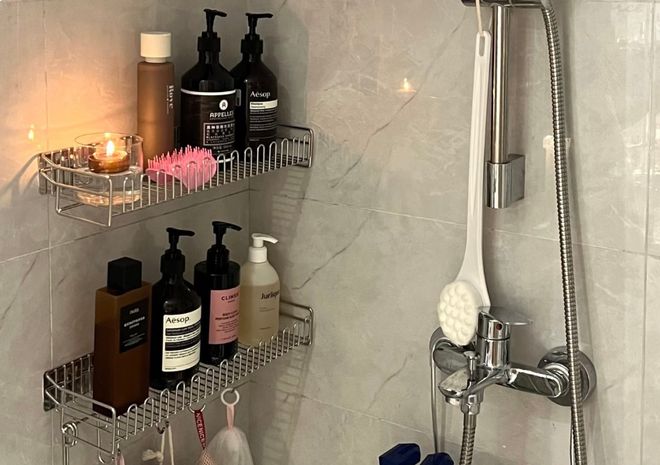卫生间内尽量做好干湿分离。例如湿区用品,像沐浴露,可以用壁龛或者是开放架;而干区用品,像纸巾、干毛巾也尽量放在干爽的地方。