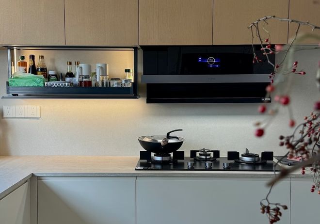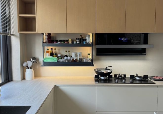 部分吊柜建议采用上翻门辅助,吊柜可用下拉式的升降拉篮或者是上阀门加气压杆会更好用。