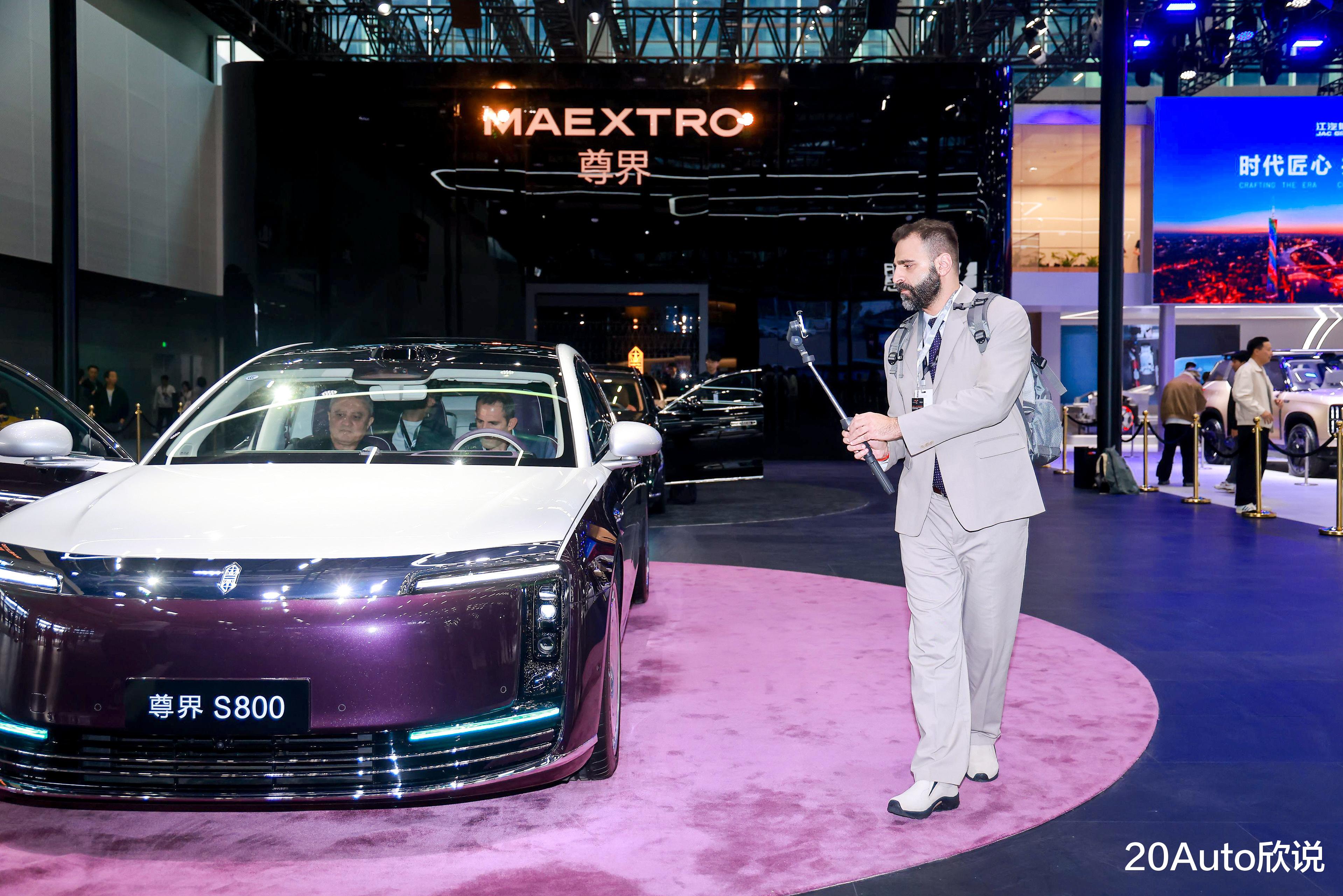 位于江淮展台C位的尊界S800,不时吸引观众驻足观看、打卡、拍照。包括央视在内的主流媒体还到此直播,向外界传递中国百万级豪华车的高光时刻。