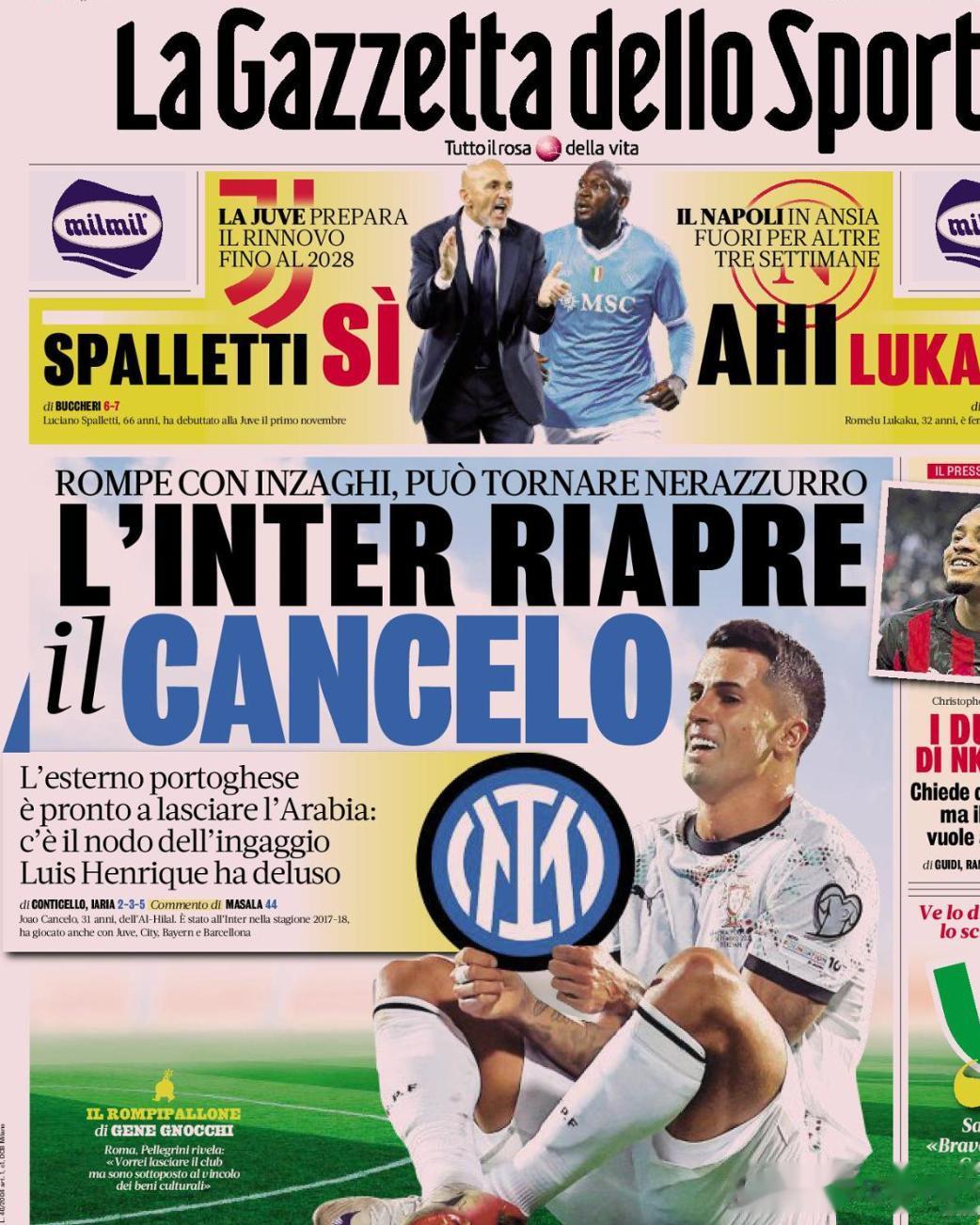 无论是意大利《米兰体育报》头版,天空台的焦点话题,或是视频播客网站上莫雷托等一票记者们,又或是推特脸书那一票球迷各种花式P图的假官宣,都在谈论坎塞洛。