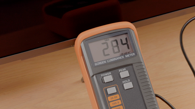 8%窗口下激活最高亮度6280nits,注意看此刻亮度计量程是X10,这个数值已经超过了官方的6000nits宣传数值,当然官方的数值可能是在10%的窗口下激活的。