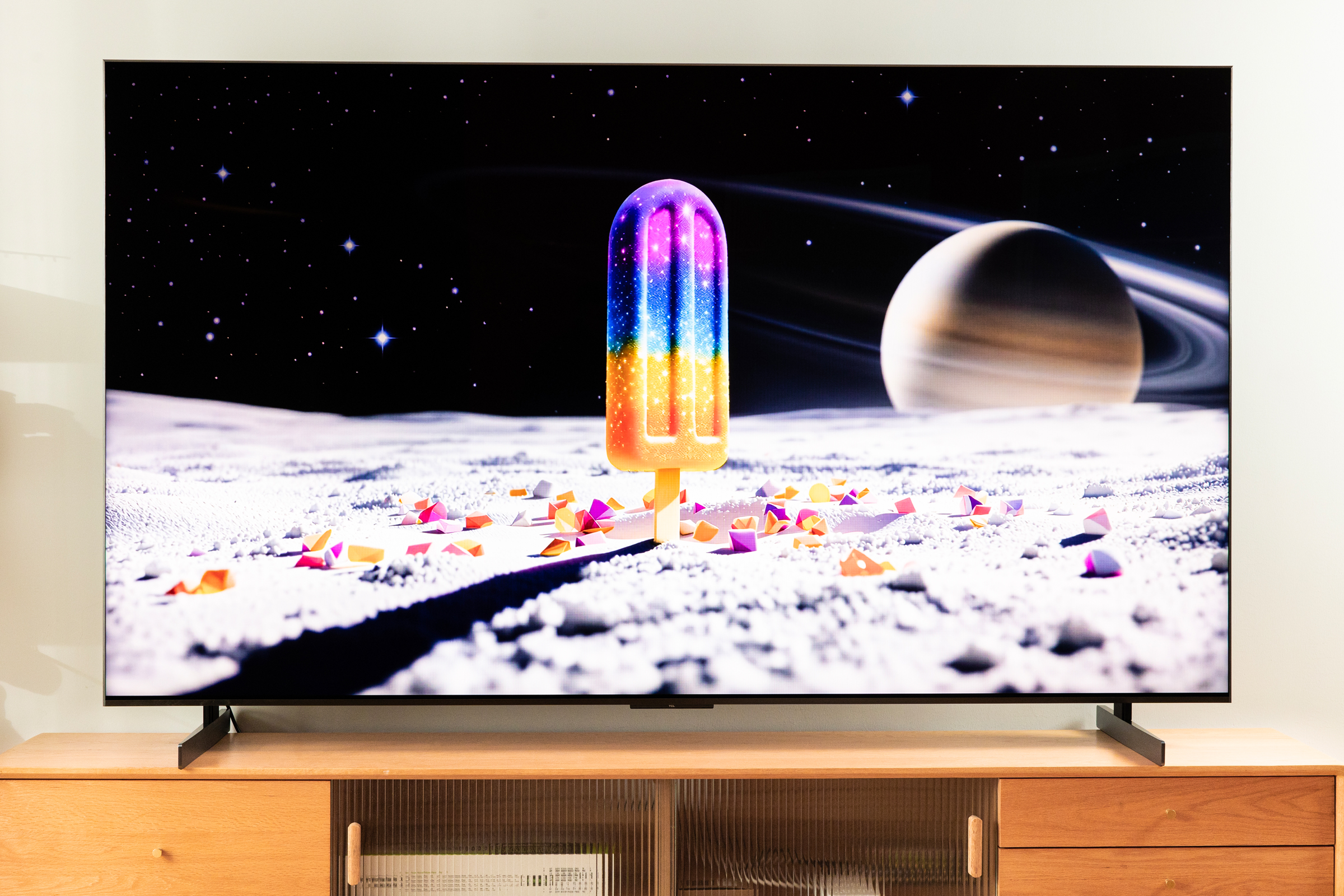 100%BT.2020全局高色域是目前影视领域的最高水准,HDR内容只做,包括杜比视界都是主要的目标色彩空间,不过完全按照这个规格制作的片源很少,我也找了一些这个规格下的片源,做了一个屏摄,老实说实际观感比照片中表现的更惊艳。