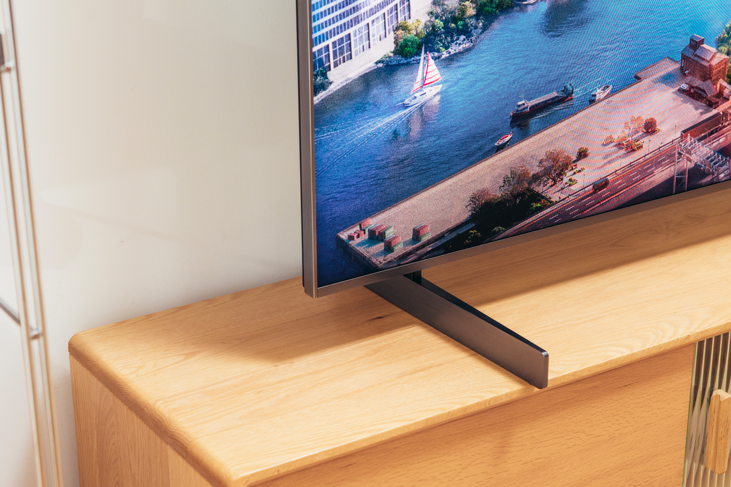 3mm左右的实际宽度,在65英寸这个尺寸下眼睛都会无意识忽略。