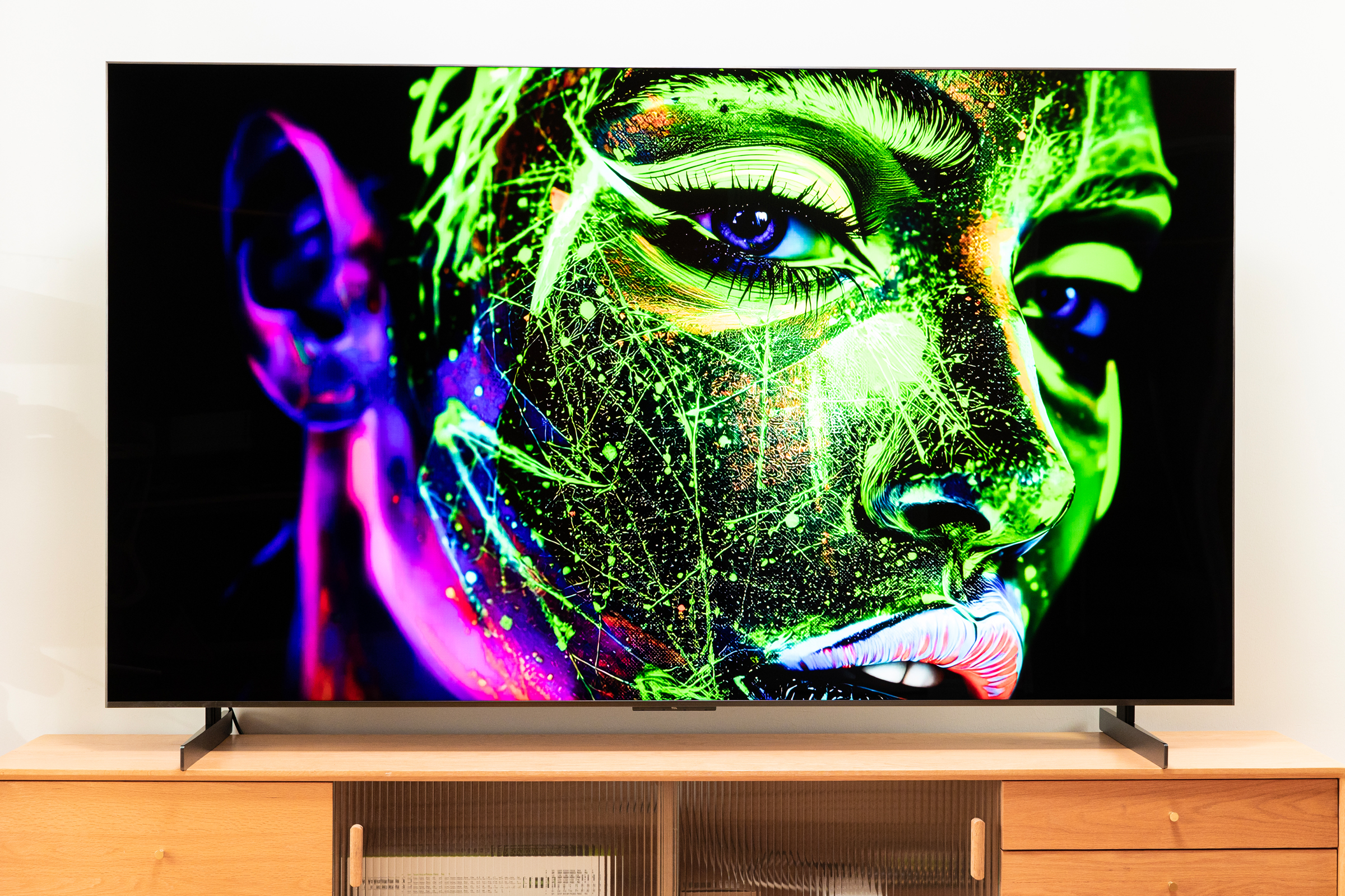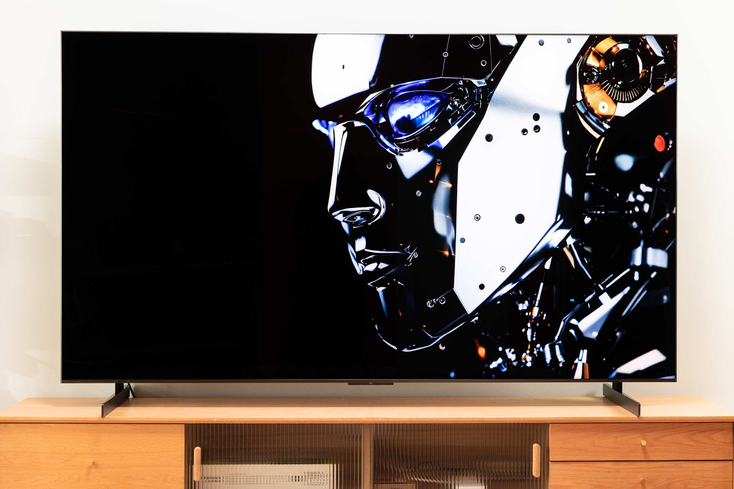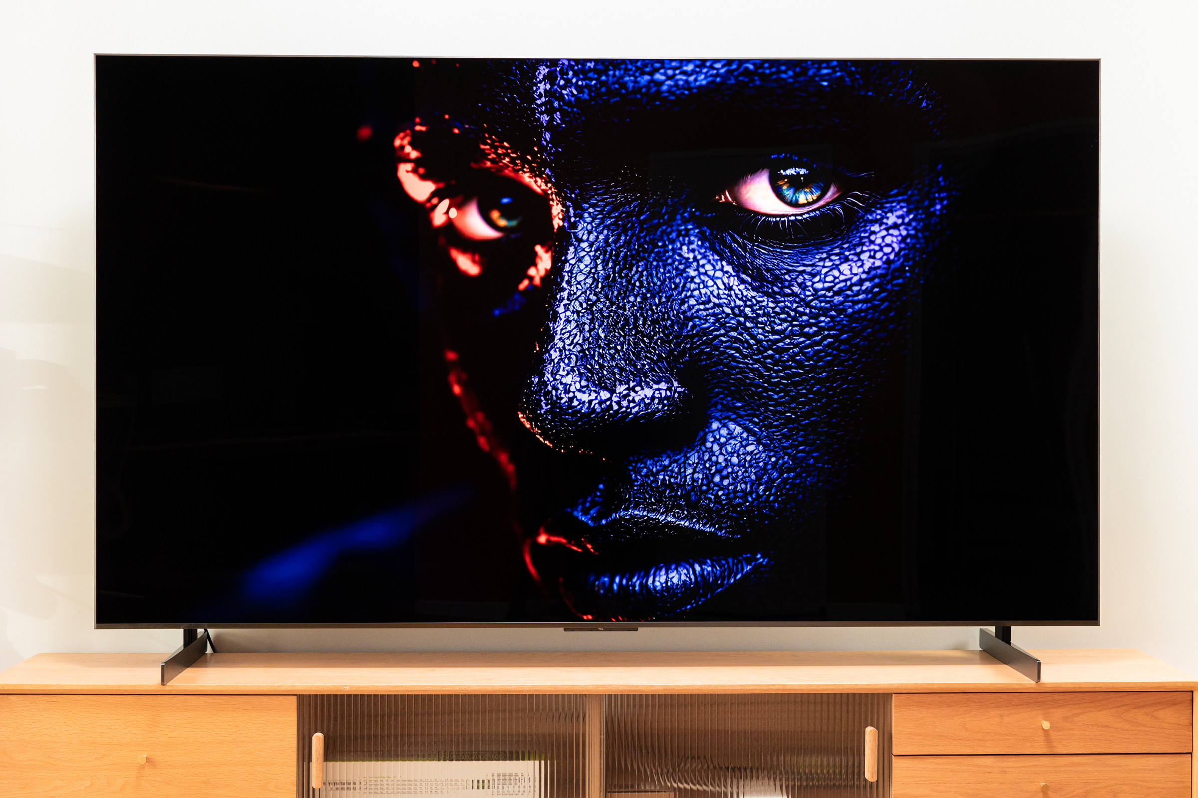 另外普通VA屏在大角度下对比会下降,但是超级蝶翼华曜屏并不会,屏幕本身抗反光也属于一流水准,众所周知当电视机屏幕上出现反光或者倒影,整体对比度是会下降很厉害的。