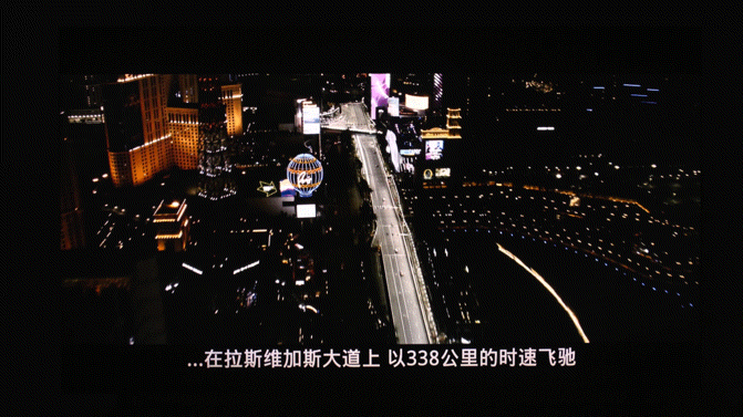 电影三阶段,也是我最喜欢的环节,黑夜航空俯拍拉斯维加斯拉升的镜头,色彩和对比度表现很不错。