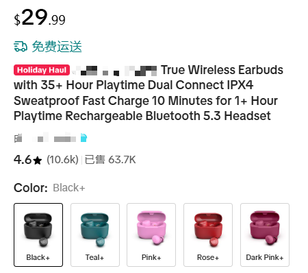 梯度定价法:提供基础款、升级款和豪华款套餐。例如,基础款耳机定价$29.99,升级款(增加防水等级)定价$49.99,豪华款(含多种耳塞套和充电盒)定价$69.99。这既能满足不同需求,又能让中间价位显得性价比最高。
