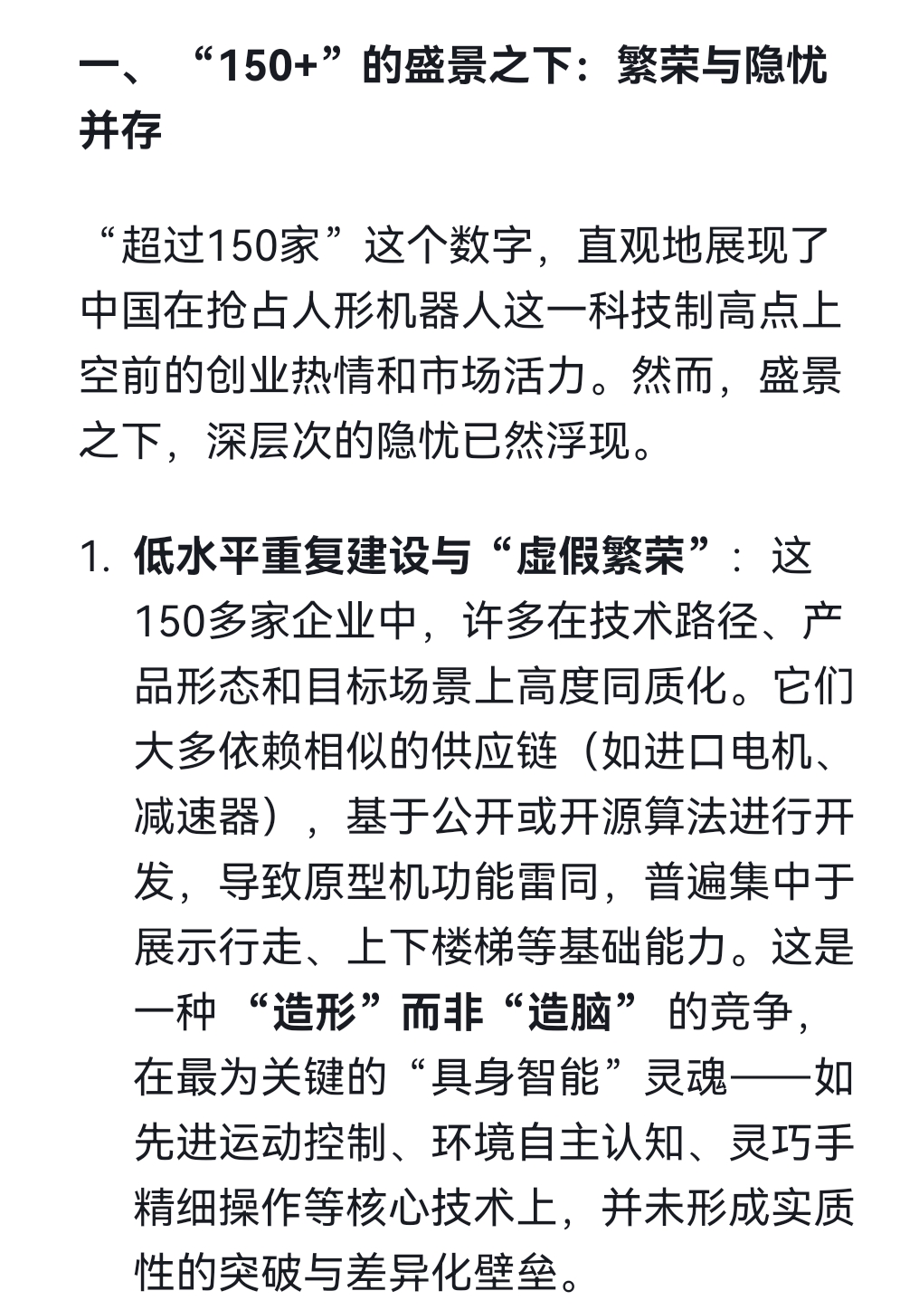 1. 资源向“硬科技”集中:未来的政策扶持与资本导向,将更倾向于那些在高性能执行器、灵巧手、运动控制算法、具身智能大模型等“卡脖子”领域实现突破的企业,而非简单的整机组装与集成商。