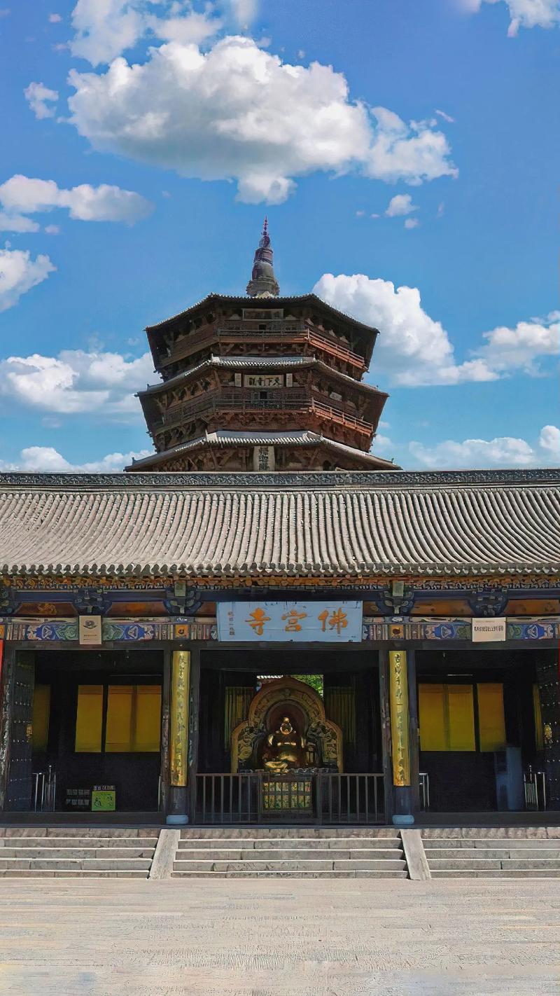 路线:佛宫寺山门(看“天宫楼阁”影壁)→ 木塔一层(拜释迦牟尼佛,观察柱础“覆盆式”雕刻)→ 二层(仰望“天宫楼阁”藻井,数斗拱种类)→ 四层暗层(听“镇塔之宝”壁画故事)→ 文物陈列馆(看辽代建筑构件、修复工具)。