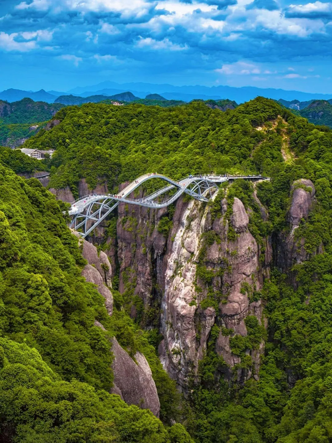 “人间仙境”官方认证,缆车上山,徒步3km环线,悬崖观景台、莲花台、如意桥(玻璃桥)一次打尽。秋天云海概率50%,枫叶点缀绝壁,航拍秒出大片。山脚飞拉达+高空自行车,可做“极限挑战”。