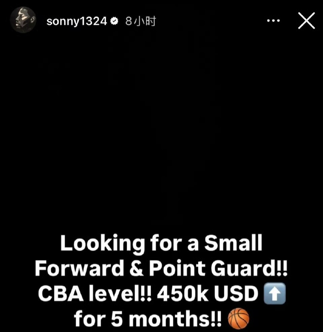 近日,广东男篮前外援威姆斯,在社媒发文帮某俱乐部招聘外援,具体条件如下:位置:小前锋和控卫,CBA水准,薪资:五个月45万美元以上。这个CBA水准有点让人遐想,到底是CBA球队,还是具有CBA水准的球队,NBL联赛也在疯狂引进外援,他们有些球队也是有CBA水准的。评论区有球迷说是帮南京同曦招募外援,不过同曦男篮四外援已经确定了,广东男篮我不用他帮,难道是深圳男篮吗?距离新赛季开始还有一段时间,让我们拭目以待吧。