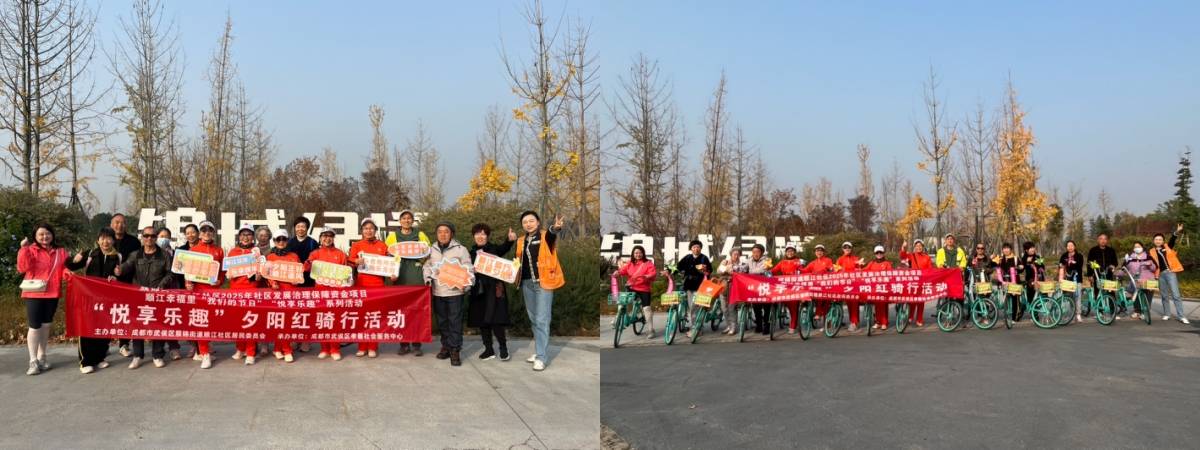 为丰富社区老年人精神文化生活,倡导健康低碳的生活方式,同时普及冬季养生知识。2025年11月28日上午,顺江社区联合成都市武侯区孝善社会服务中心开展“悦享乐趣”夕阳红骑行活动,辖区近20名老年骑行爱好者踊跃参与,沿天府绿道悦动彩林段开启了一场兼具活力与温情的健康之旅。