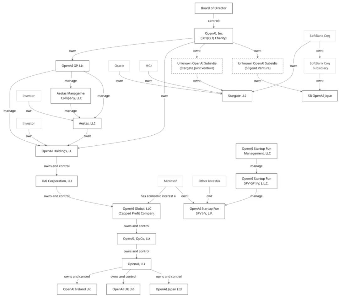 核心是OpenAI基金会(OpenAI Foundation),这个非营利组织将完全控制下属的公益公司OpenAI Group。