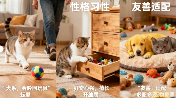 2. 毛发与环境护理SH 型每周用针梳梳理 1 次,LH 型需用排梳重点梳理腋下、腹部及尾巴毛发,预防毛球症。每月洗澡 1 次,使用温和的宠物沐浴露。环境布置需避免过高猫爬架,可放置矮款 scratching post 和益智漏食玩具,满足其运动与智力需求。
