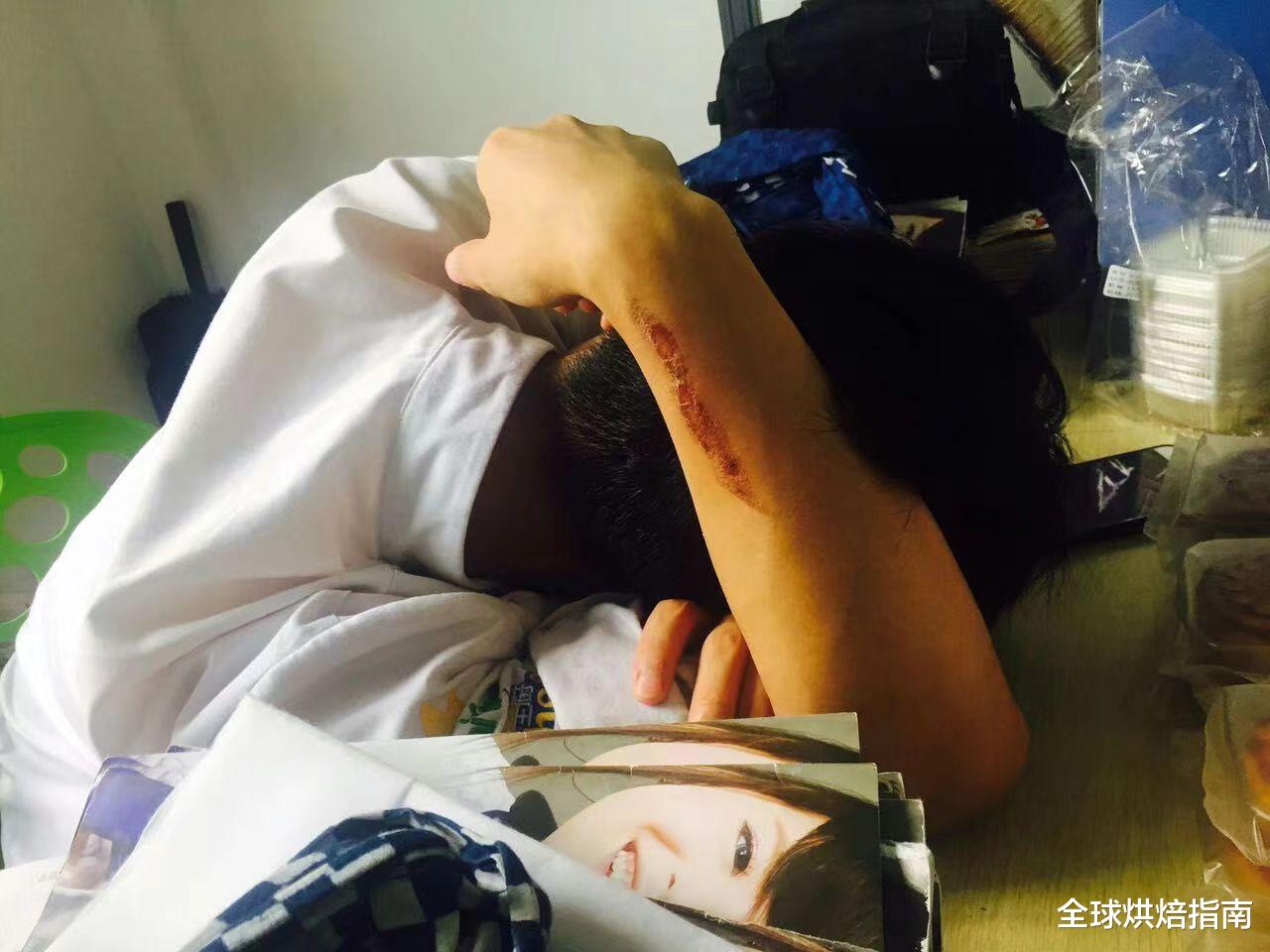 “到了重庆的比赛现场,我整个人都是有点懵的,整体的环境与我们练习的环境完全不同,每一个工位都很小,现场人多嘈杂,我只能告诉自己,专注在做面包上” 由于对现场工具不熟悉,蔡叶昭在使用刀具的时候在手上划了道很深的口子,鲜血不断的涌出。“当时裁判都在劝我退赛,因为伤口实在是太深了,但是我当时对于这种疼痛没有任何感觉,只想完成这场比赛,为了不让伤口继续流血,我在手指上缠绕了很多层保鲜膜,就这样完成了比赛”蔡叶昭回忆道。