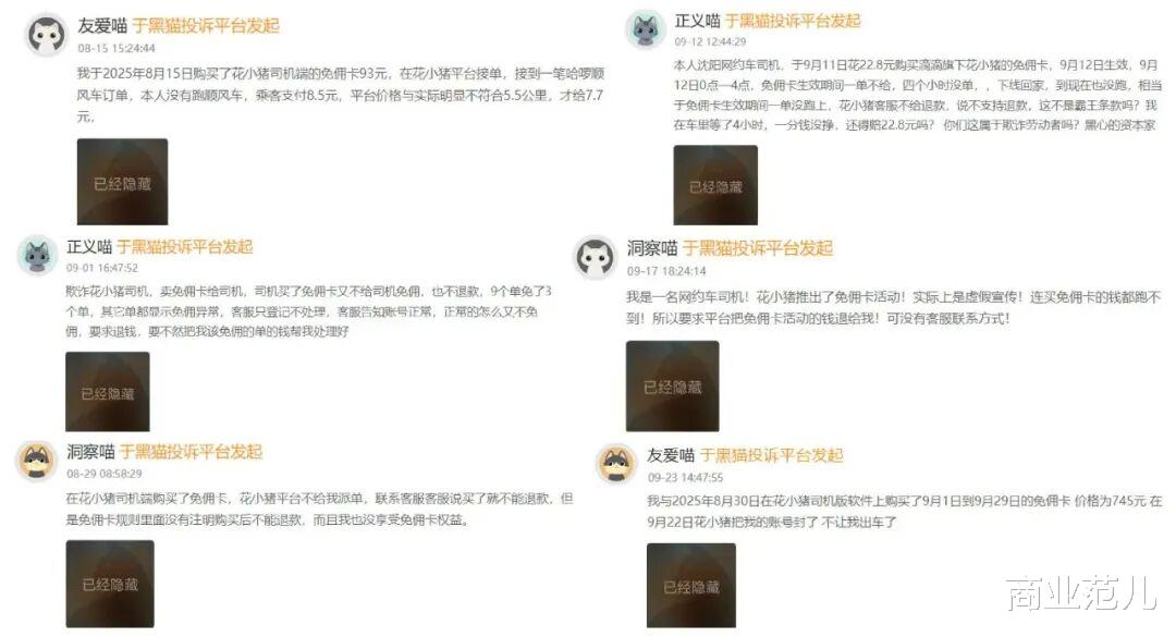 司机群体面临的生存压力,最终可能传导并转化为乘客服务体验的下降。在黑猫投诉平台关于花小猪的投诉中,“司机临时加价”“服务态度差”“接单后被取消”等关键词反复出现,暴露出司机群体在高压下的服务变形。
