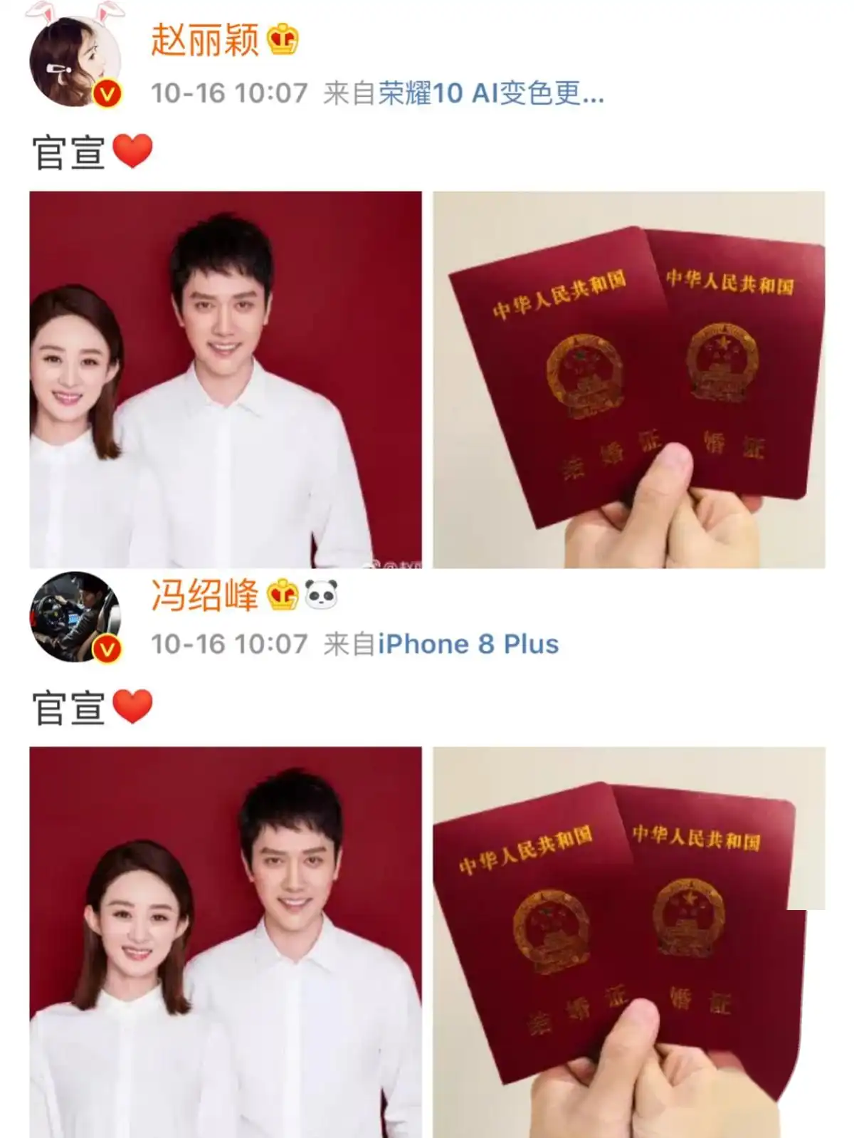 2018年秋天,赵丽颖和冯绍峰官宣结婚消息。