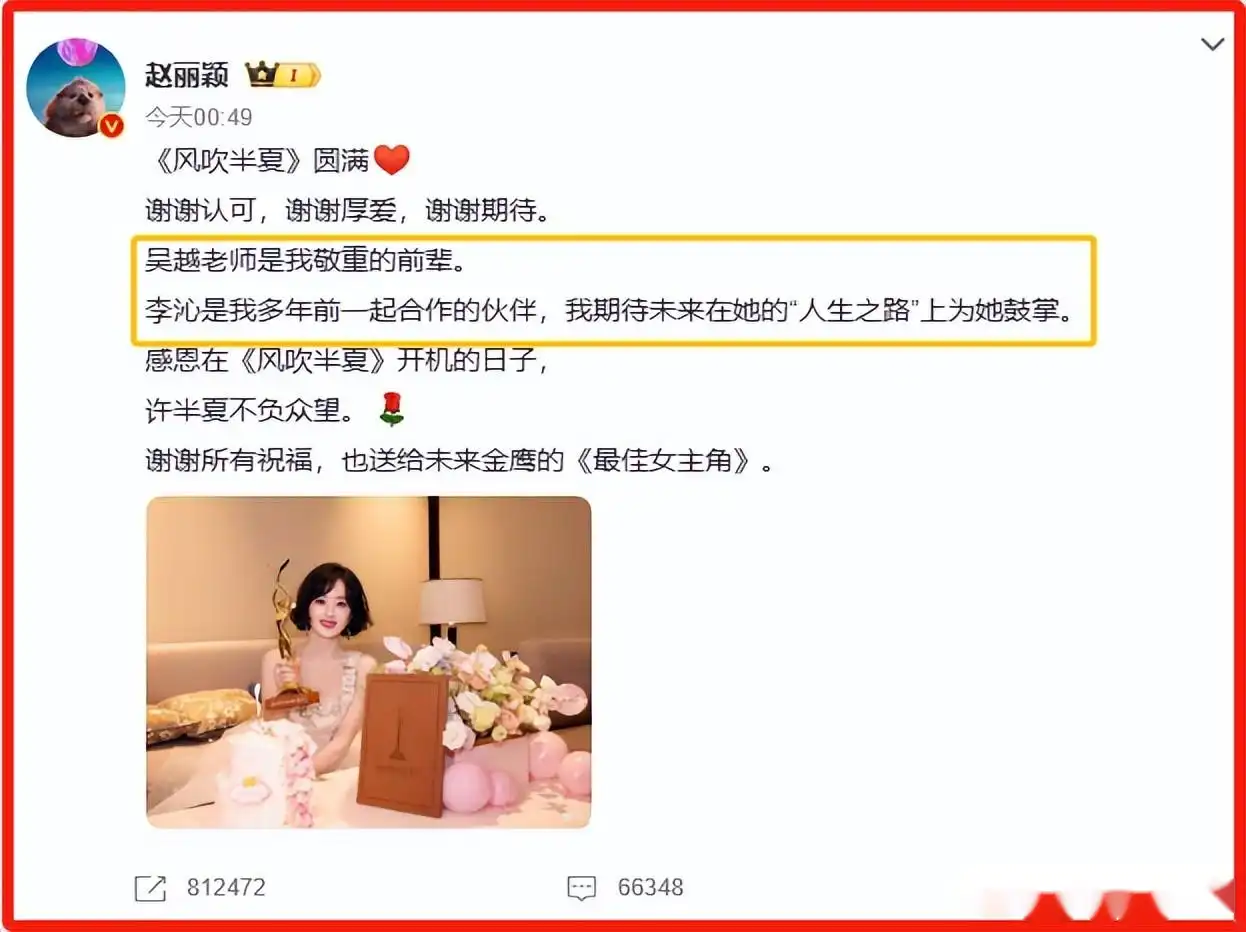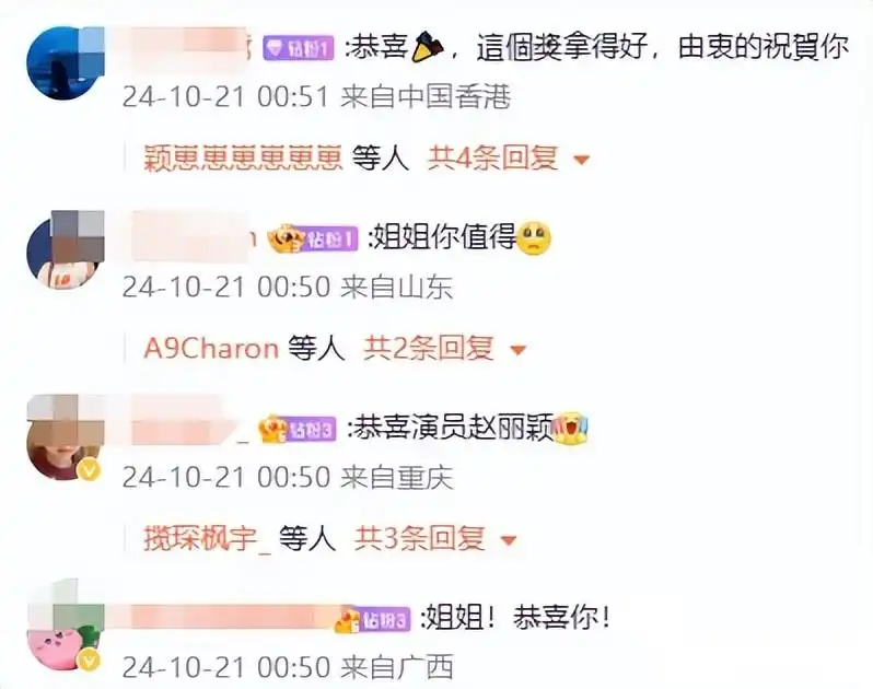 或许是赵丽颖过去坚持梦想的精神感动了一众观众。