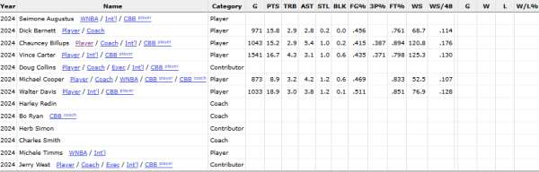 2024年,比卢普斯与杰里-韦斯特、文斯-卡特等人一同入选了奈史密斯篮球名人堂。