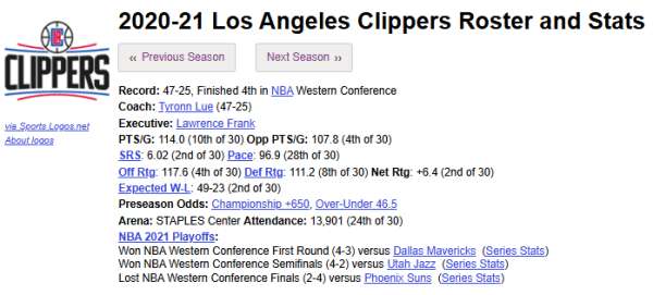 快船常规赛取得47胜25负的战绩,位列西部第四。