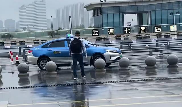 无奈之下,博主让妻子在车站避雨,而他自己则是冒着雨打了一辆出租车。