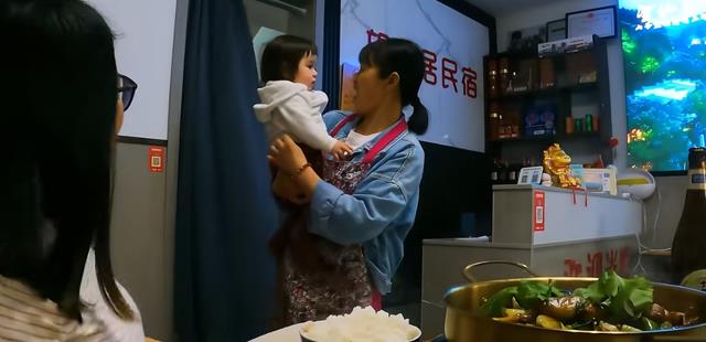 这个过程当中,餐馆的老板娘见他们抱着孩子不方便吃饭,于是主动提出帮他们带孩子。