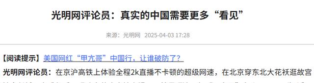 根据光明网的报道,这个事情刊登于2025年4月3日发布的《光明网评论员:真实的中国需要更多“看见”》