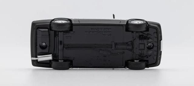 TLV作为1/64模型的扛把子,模型的形准完全没问题,悬挂高度适中,轮子大小也合适;模型的漆面符合TLV的尿性,不会惊艳,但也不会有啥问题,稳定压倒一切,而且缝隙刻线还算均匀;车门把手和钥匙孔都是浮雕+移印的,车身侧面有防撞的横幅饰条,两个颜色的车模都是用移印的方式刻画黑色饰条,而黑白款饰条边缘略微有飞边;模型自带后视镜,做的也比较精致,而这个在TLV新车型中基本也成为标配。