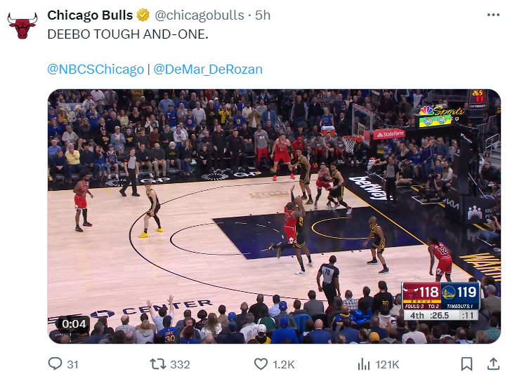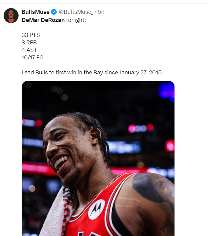 最近,NBA赛场上发生了一场引人注目的比赛,引发了广泛的热议。在这场比赛中,芝加哥公牛队的球员德马尔·德罗赞(DeMar DeRozan)展现出了出色的表现,他在比赛的关键时刻挺身而出,帮助球队战胜了对手,结束了长达3328天的魔咒。他的表现不仅让球迷们兴奋不已,也引发了人们对他未来的关注和期待。