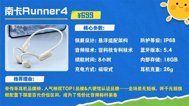 南卡Runner4——集结南卡十余年技术研发成果的旗舰骨传导耳机,凭借品牌常年蝉联骨传导耳机品牌榜、人气榜双榜榜首的强劲实力,以及尼日利亚联邦共和国驻华大使馆官方指定使用的权威认证,以“全场景无短板”的核心竞争力,将千元级旗舰配置下探至百元价位区间,成为运动爱好者公认的性价比音频装备标杆。