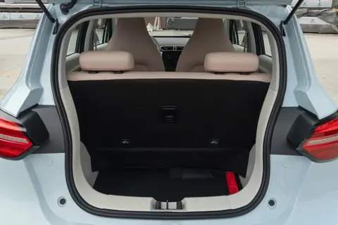 储物空间,小而精巧,处处用心。手套箱虽然不算特别大,但分层合理,适合纸巾等小东西;中控台设计简洁,储物格不少——杯架、门板储物槽、中央扶手箱都能放些随身小物件,手机、钥匙、充电线各归其位,不会显得杂乱。中央扶手箱内部深度不错,能放下一瓶550ml矿泉水+玩具+充电宝;四个车门都有储物格,前门能竖着放瓶装水,后门也能放雨伞或小包;后排座椅支持比例放倒(4/6),这是我很喜欢的一点!偶尔买大件物品,比如折叠自行车、行李箱、甚至一袋猫砂,放倒后能形成一个接近纯平的装载平台,后备厢小而能装常规容积210L放两个登机箱没问题。后排放倒扩展到508L,实用性大大提升,临时搬家,露营装备都能搞定。