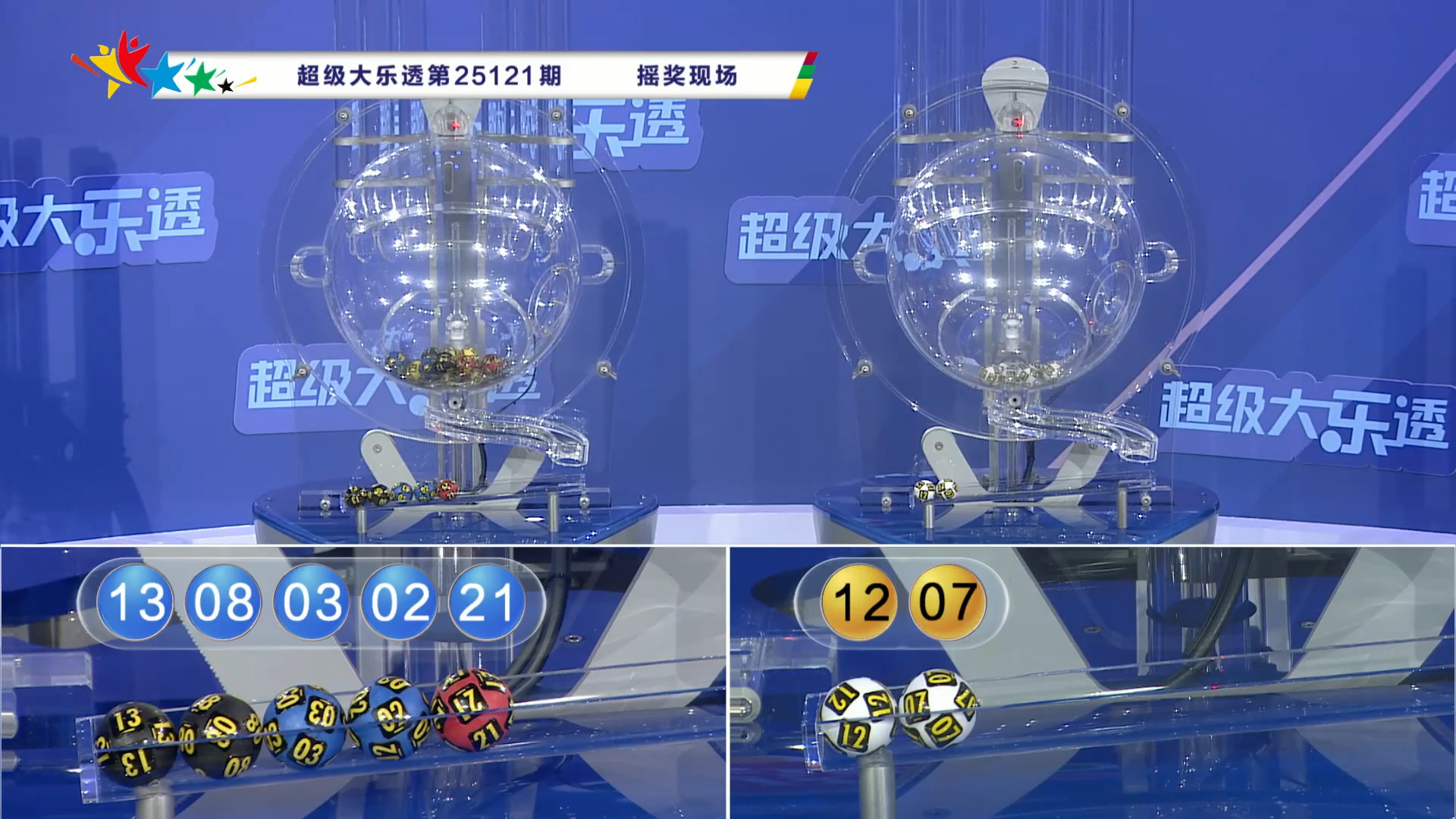 本期大乐透开奖号码为:前区 2、3、8、13、21,后区 07、12。本期使用第3套摇奖球完成。