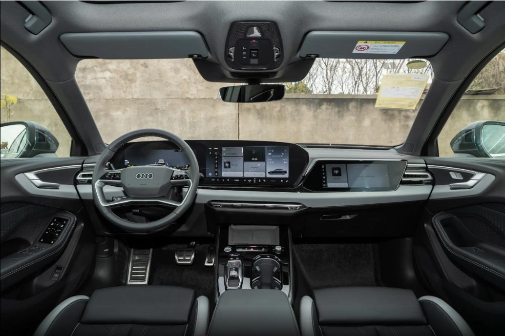颜值方面,奥迪A5L的实车比图片还惊艳,那种低趴的轿跑姿态,配上大尺寸的六边形进气格栅,看着就特精神,不像有些豪华车总端着架子。LED大灯的造型特别犀利,白天看着简约大气,试驾到傍晚的时候我开了灯,灯光铺得特别均匀,连路边的路牌都看得一清二楚,安全感直接拉满。
