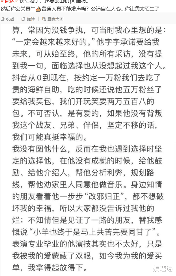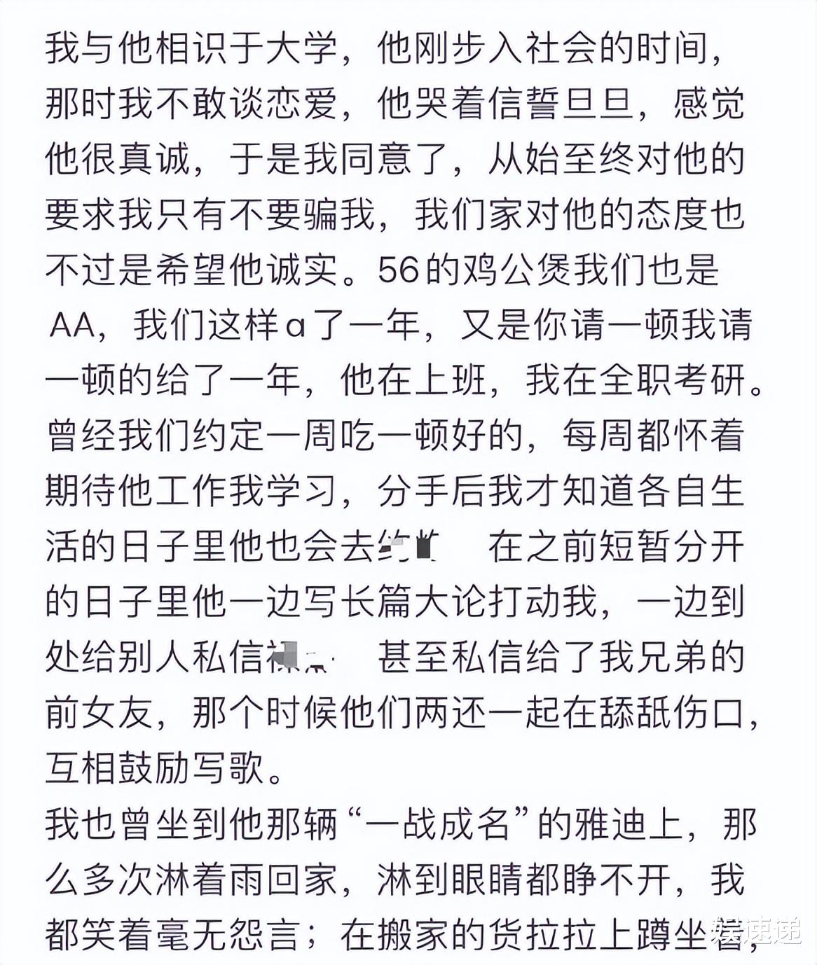简而言之就是两人马上准备结婚,结果前女友却发现揽佬在恋爱的三年期间,不仅出轨、嫖娼还睡粉。