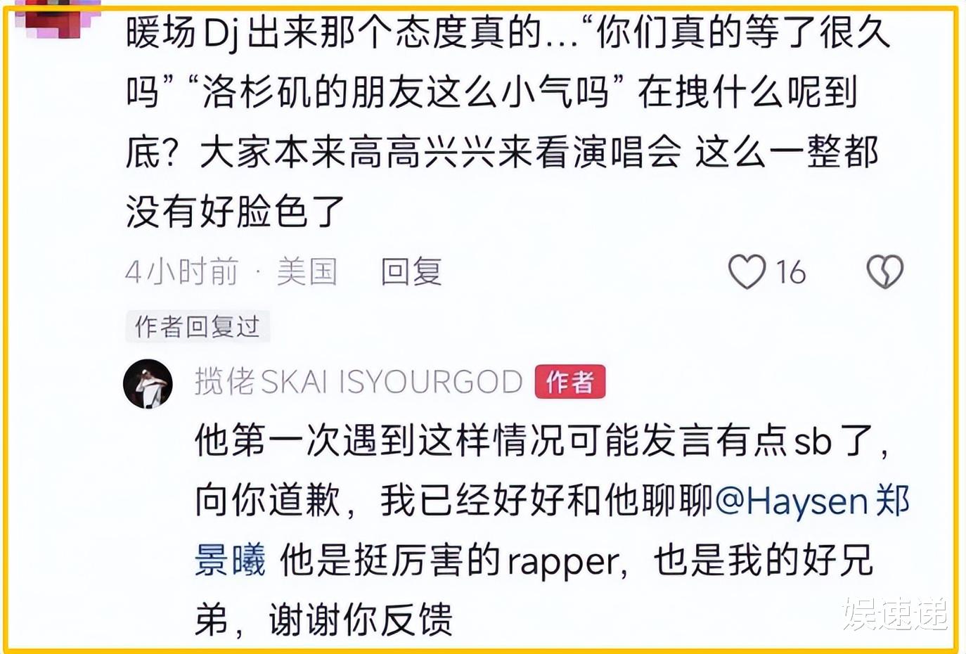 洛杉矶迟到风波曝光后,有粉丝连忙跑去留言确认,希望哥别塌,还想听孟菲斯!揽佬对此高调回应,让粉丝把心放在盆腔里,哥们从来不犯法。