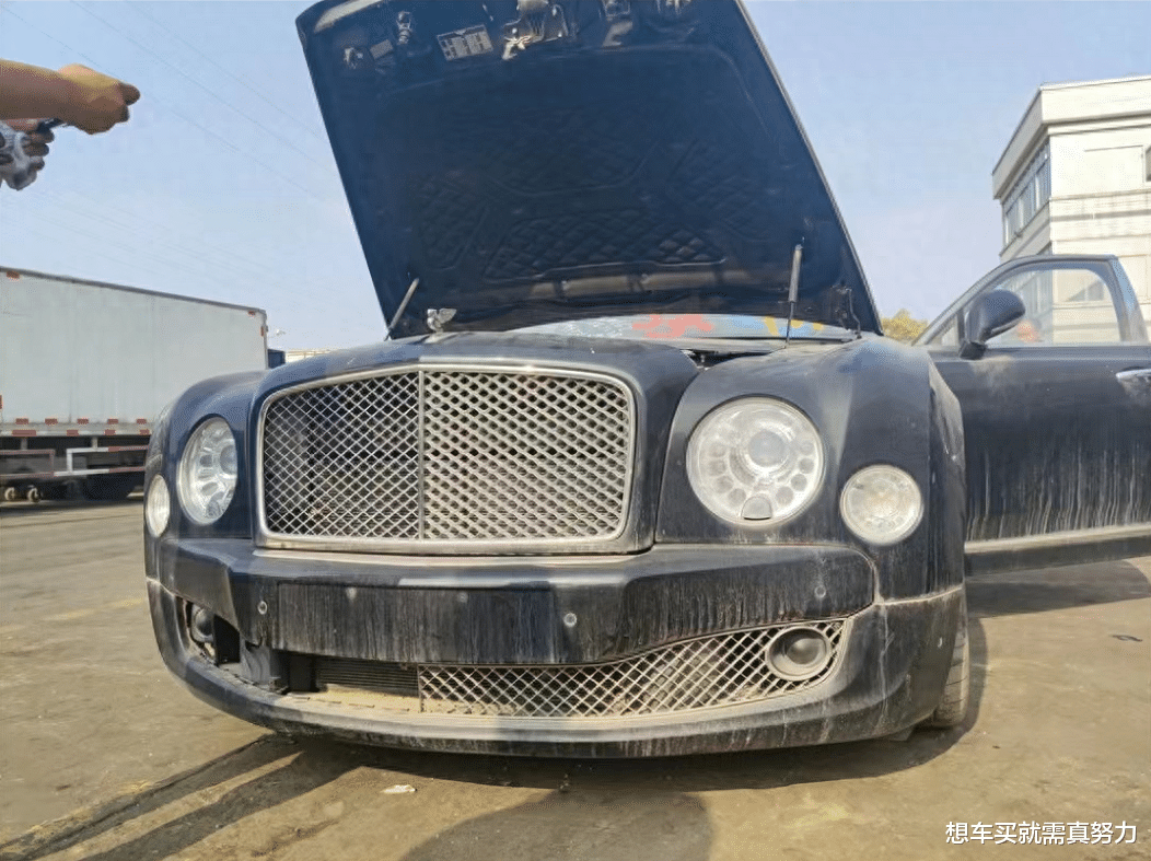下图这辆黑色宾利慕尚轿车是山东一位饭店老板花了30万元从拍卖行买的,此车属于泡水车,价格低于市场行情;这位老板表示本以为时来运转,捡到便宜,前后修理了两个月,总共花了30万元,但是仍然无果,最后选择放手。